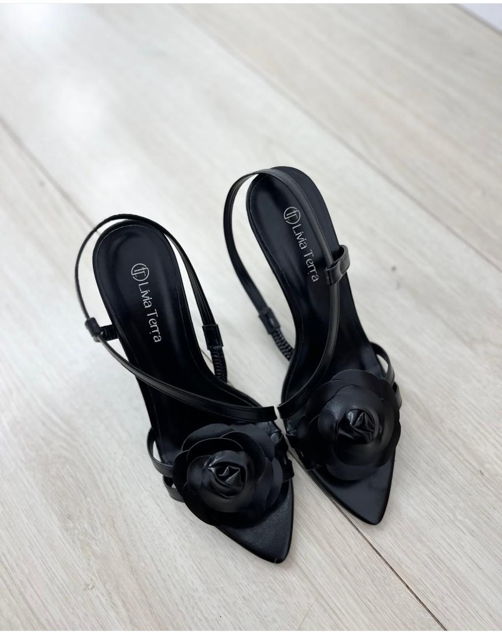 A Sandália Livia possui um salto de 10,5 cm que apesar da altura proporciona conforto e elegância para os pés. Suas tiras finas transmitem delicadeza e feminilidade. Seu adorno em flor traz um ar romântico e sofisticado ao calçado.